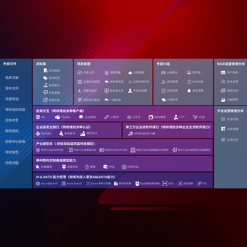 医疗器械产品上市前,,要熟悉严格与繁复评审标准,,,,整理分析监管机构指导文件中的海量信息。。。。企业急需一个智能化解决方案,,,,提升知识管理效率,,,,提高评审通过率,,,,以提升其市场竞争力。。